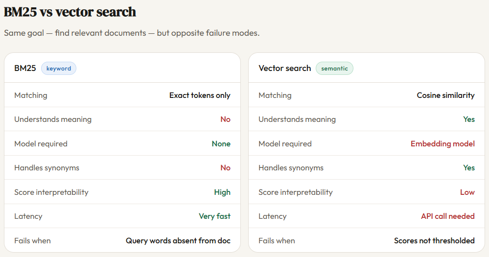 When you type a query into a search engine, something has to decide which documents are actually relevant β and how to rank them. BM25 (Best Matching 25), the algorithm powering search engines like Elasticsearch and Lucene, has been the dominant answer to that question for decades. It scores documents by looking at three things: [β¦] The post How BM25 and RAG Retrieve Information Differently? appeared first on MarkTechPost.